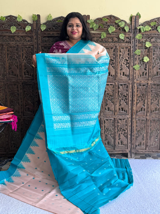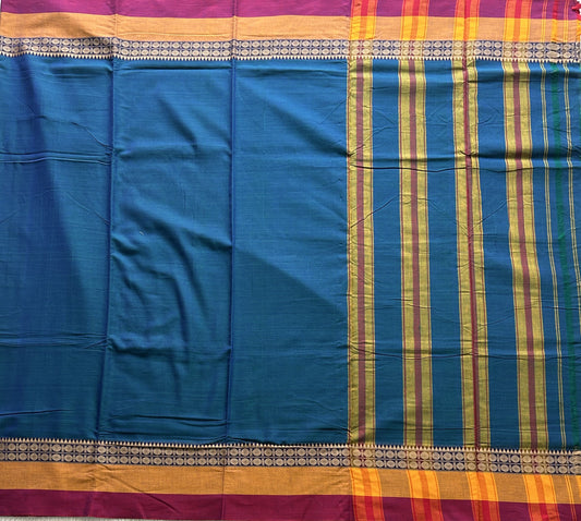 Narayanpet Cotton Saree Ocean Blue Colored Complemented with a Thread Border.