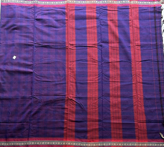 Narayanpet Cotton Checks Saree Purple Colored Complemented with a Thread Border.