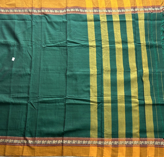 Narayanpet Cotton Saree Emerald Green Colored Complemented with a Thread Border.