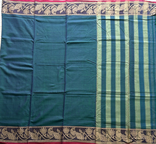 Narayanpet Cotton Saree Peacock Blue Colored Complemented with a Thread Border.