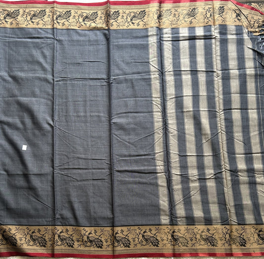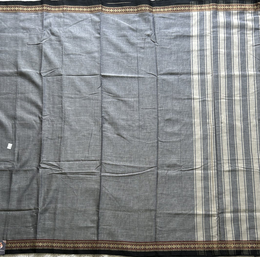 Narayanpet Cotton Saree Gray Colored Complemented with a Thread Border.