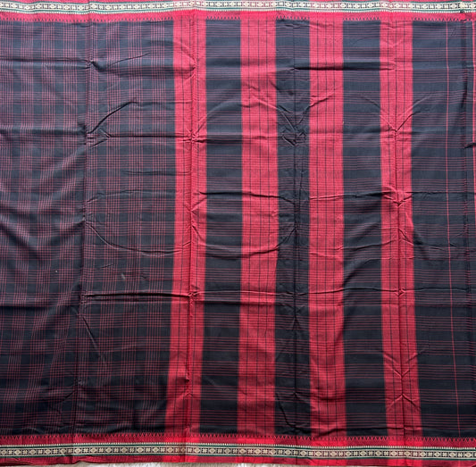 Narayanpet Cotton Checks Saree Jek Black Colored Complemented with a Thread Border.
