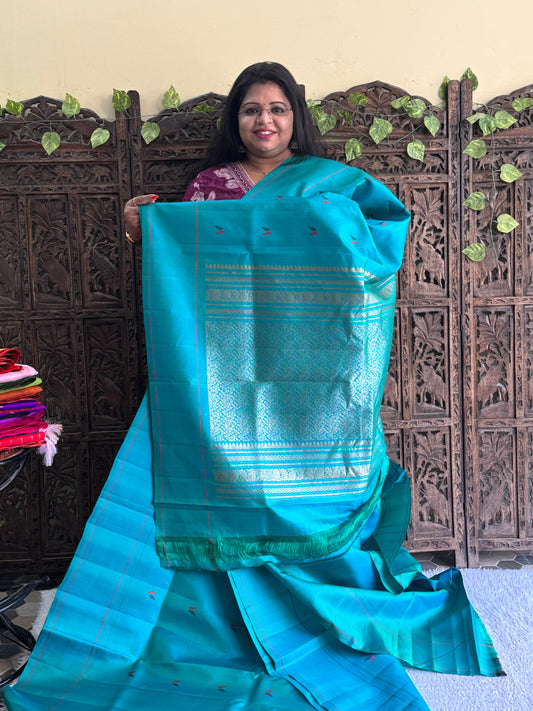 Gadwal Silk Saree Turquoise Colored Complemented With Plain Border