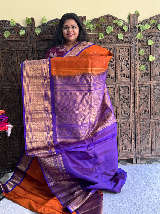 Gadwal Silk Saree Burnt Colored Complemented With Gold Zari Border