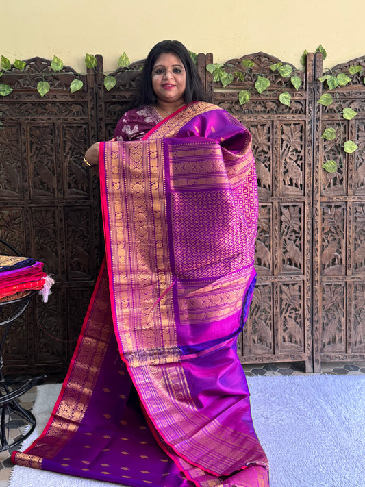 Gadwal Silk Saree Sacramento Colored Complemented With Gold Zari Border