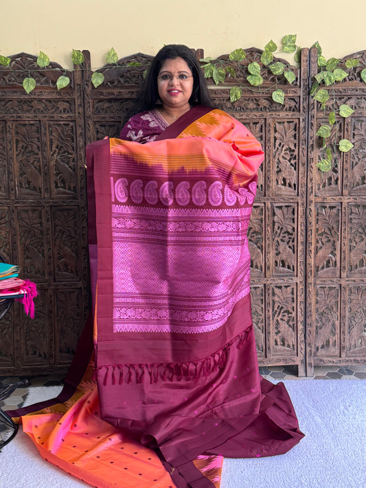 Gadwal Silk Saree Salmon Colored Complemented With Plain Border