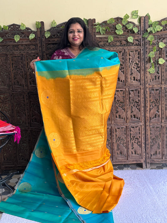Embark on a journey of elegance and tradition with Gadwal Silk Sarees at Sampradaya Designer Studio. Hailing from the historic town of Gadwal in Telangana, these sarees are a testament to the rich cultural heritage of India. Crafted with meticulous attention to detail, each Gadwal Silk Saree showcases exquisite craftsmanship and timeless beauty. Our artisans weave together the finest silk threads with intricate zari work, creating stunning patterns and motifs that capture the essence of tradition. Whether it's the vibrant colors, the intricate designs, or the luxurious feel of the fabric, every aspect of our Gadwal Silk Sarees reflects our commitment to quality and craftsmanship. Perfect for weddings, festivals, and special occasions, these sarees are cherished heirlooms that celebrate the artistry of Indian textiles. Experience the opulence and grace of Gadwal Silk Sarees at Sampradaya Designer Studio, where every saree tells a story of tradition, elegance, and heritage.