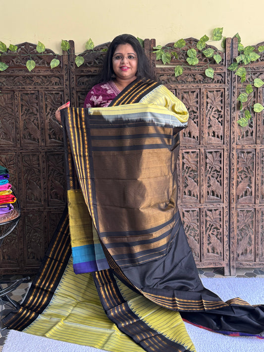Gadwal Silk Saree Lime Colored Complemented With Gold Zari Border