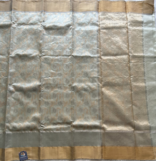 Tissue Organza Saree Slate Gray Colored Complemented with a Zari Border.