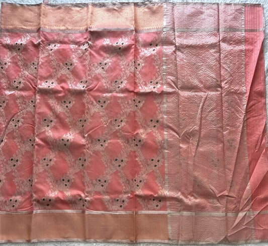 Semi Raw Silk Saree Peach Colored Exquisite with a Zari Border.