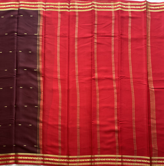 Maroon Mysore Crepe Silk Saree with Silver Zari Border | Pure Handloom | Silk Mark Certified
