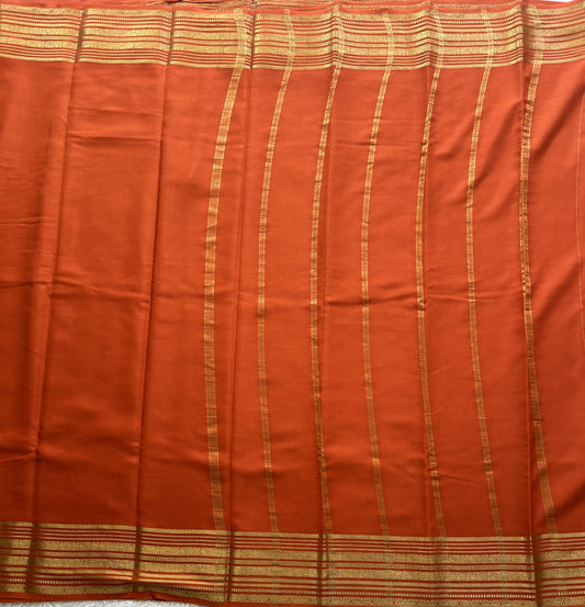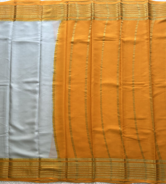 Orange Mysore Crepe Silk Saree with Silver Zari Border | Pure Handloom | Silk Mark Certified