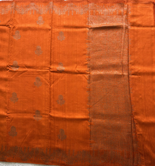 Semi Raw Silk Saree Dark Peach Colored Exquisite with a Zari Border.