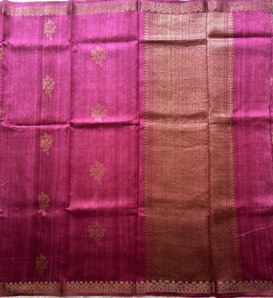 Pink Banarasi Raw Silk Saree with Gold Zari Border — Pure Handloom | Silk Mark Certified
