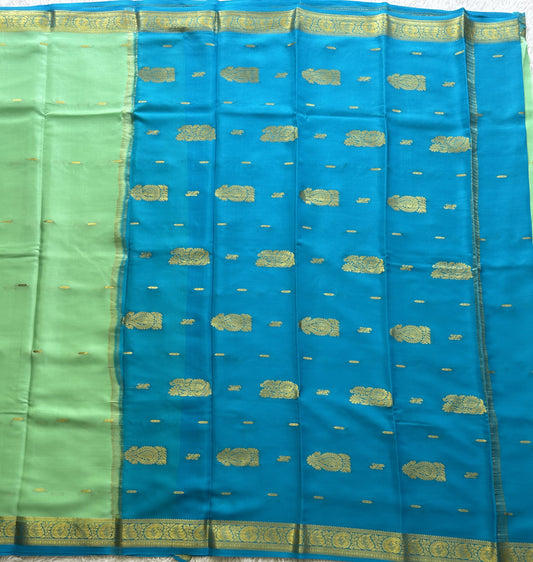 Sea Green Mysore Crepe Silk Saree with Silver Zari Border | Pure Handloom | Silk Mark Certified