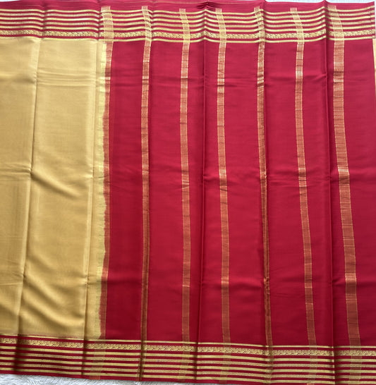 Cream Mysore Crepe Silk Saree with Silver Zari Border | Pure Handloom | Silk Mark Certified