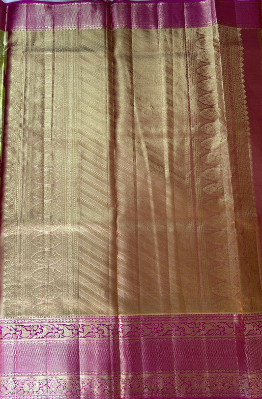 The weaving of a Kanjivaram saree is an elaborate process, often taking up to several weeks to complete. The body, border, and pallu are woven separately and then intricately joined together.