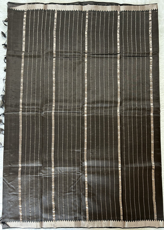 Mangalagiri Plain Pattu Saree Dark Brown colored Saree complemented with a Silver Mangalagiri Border