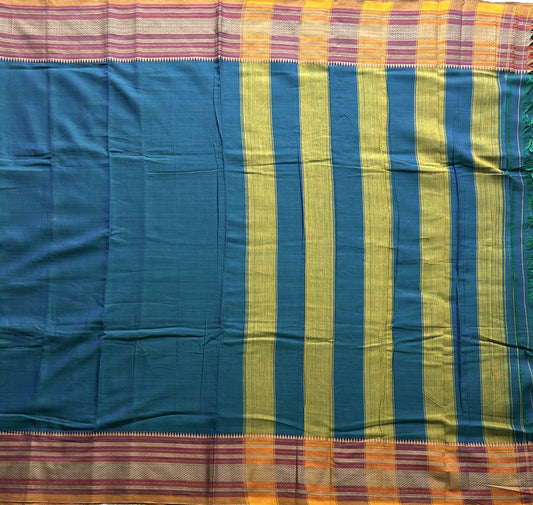 Narayanpet Cotton Saree Peacock Blue Colored Complemented with a Thread Border.