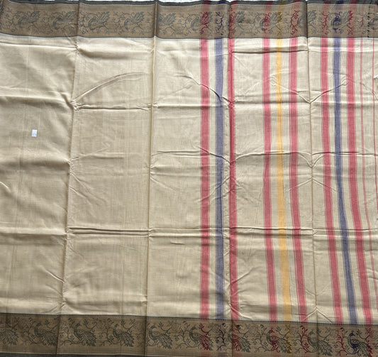 Narayanpet Cotton Saree Light Cream Colored Complemented with a Thread Border.