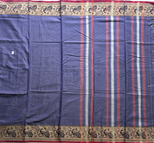Narayanpet Cotton Saree Inky Blue Colored Complemented with a Thread Border.