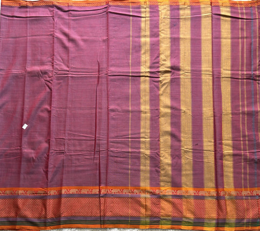 Narayanpet Cotton Saree Plum Colored Complemented with a Thread Border.