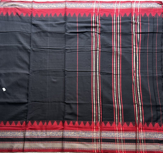 Narayanpet Cotton Saree Black Colored Complemented with a Thread Border.