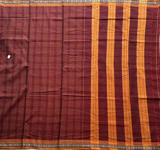 Narayanpet Cotton Checks Saree Maroon Colored Complemented with a Thread Border.
