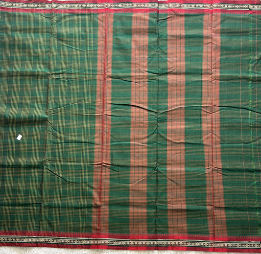 Narayanpet Cotton Checks Saree Dark Green Colored Complemented with a Thread Border.