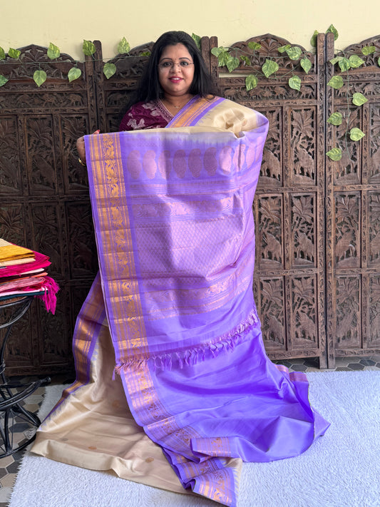 Gadwal Silk Saree Eggnog Colored Complemented With Gold Zari Border