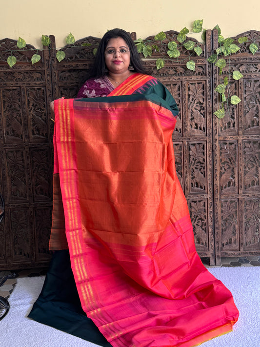 Gadwal Silk Saree Forest Colored Complemented With Gold Zari Border