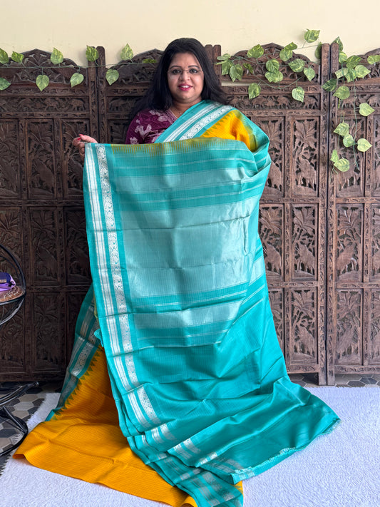 Gadwal Silk Saree Turquoise Colored Complemented With Plain Border