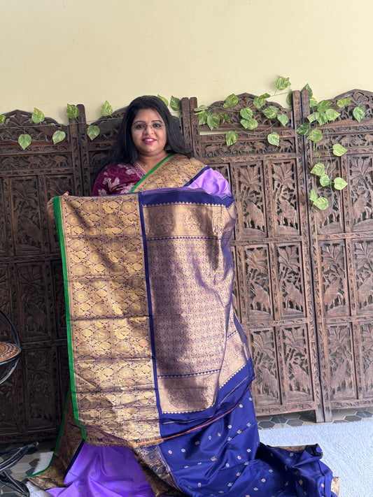 Gadwal Silk Saree Indigo Colored Complemented With Gold Zari Border