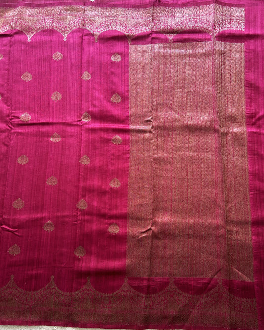 Pink Banarasi Raw Silk Saree with Gold Zari Border — Pure Handloom | Silk Mark Certified