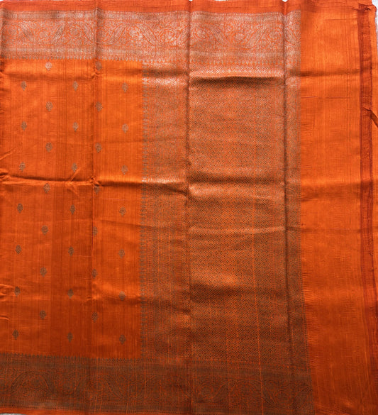 Orange Banarasi Raw Silk Saree with Gold Zari Border — Pure Handloom | Silk Mark Certified
