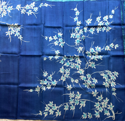 Blue Tussar Silk Saree featuring Hand-Painted Artisan Work | Pure Handloom | Silk Mark Certified