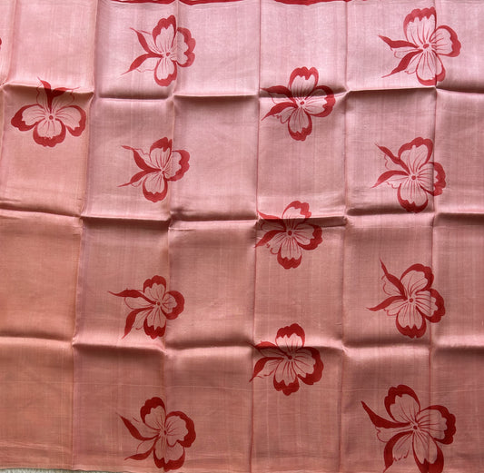 Semi Tussar Saree Peach Colored complemented with a Embosed Border.