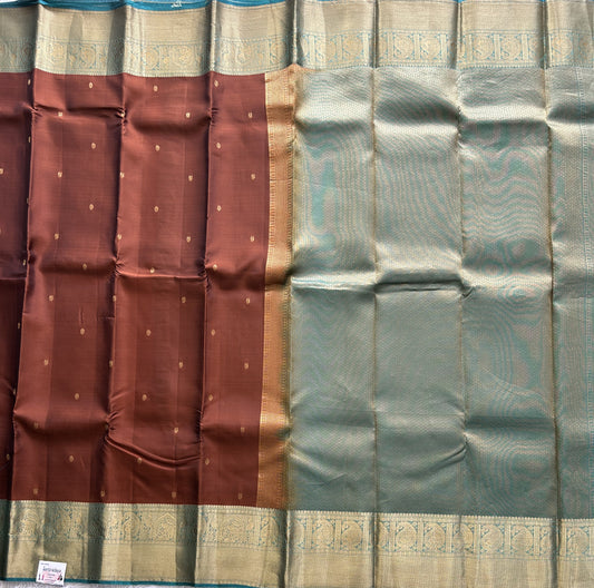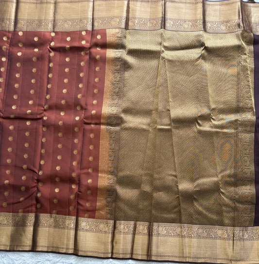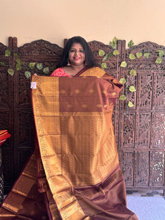 Pure Kanjivaram Silk Saree | Brown With Gold Zari Border | Handloom | Silk Mark Certified