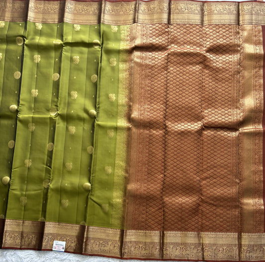 Pure Kanjivaram Silk Saree for Bridal | Green With Gold Zari Border | Handloom | Silk Mark Certified