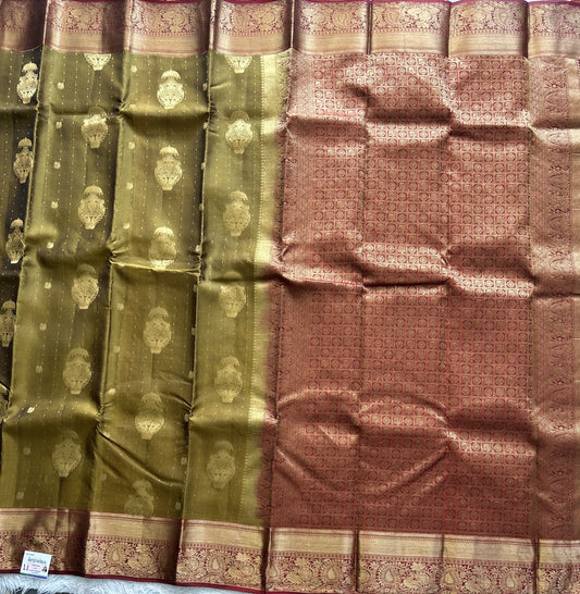 Pure Kanjivaram Silk Saree for Bridal | Gold Saree with Gold Zari Border | Handloom | Silk Mark Certified