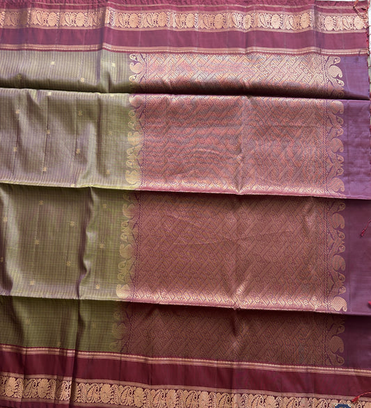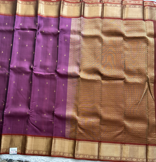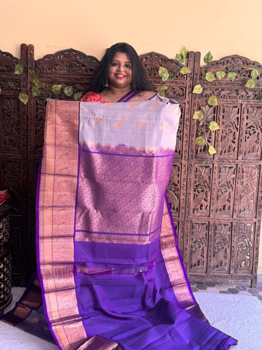 Pure Kanjivaram Silk Saree | Lavender With Gold Zari Border | Handloom | Silk Mark Certified