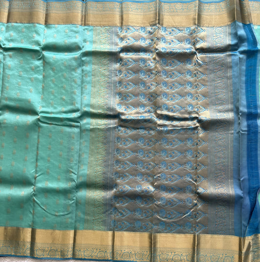 Gadwal Silk Saree Carolina Colored Complemented With Gold Zari Border