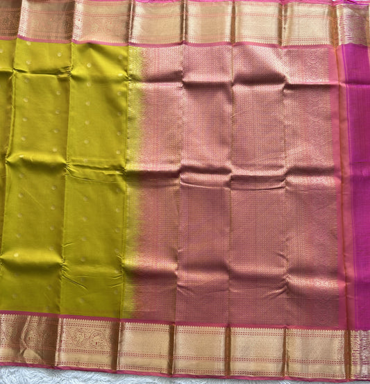 Pure Kanjivaram Silk Saree | Yellow With Gold Zari Border | Handloom | Silk Mark Certified