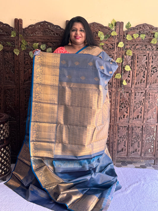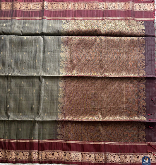 Pure Kanjivaram Silk Saree For Bridal | Grey With Gold Zari Border | Handloom | Silk Mark Certified