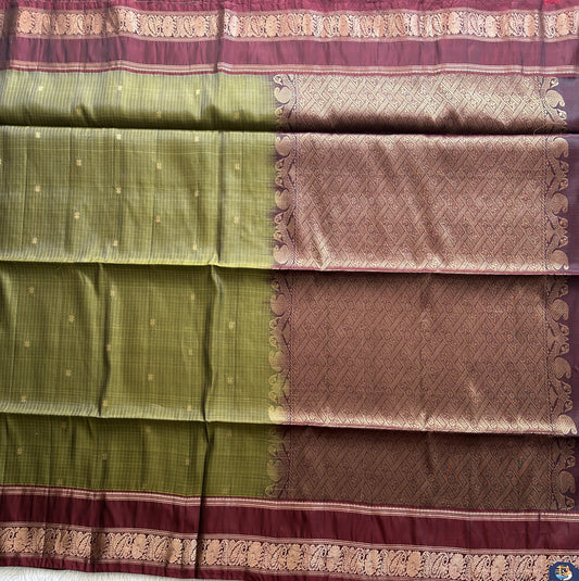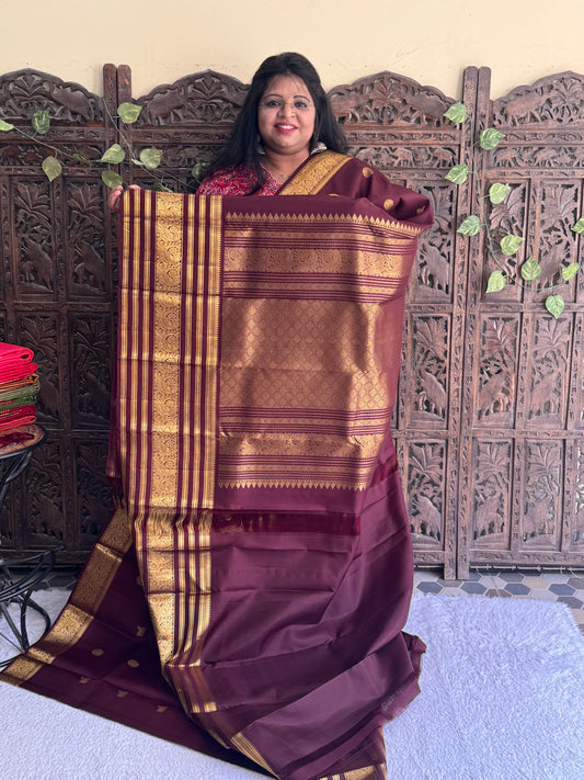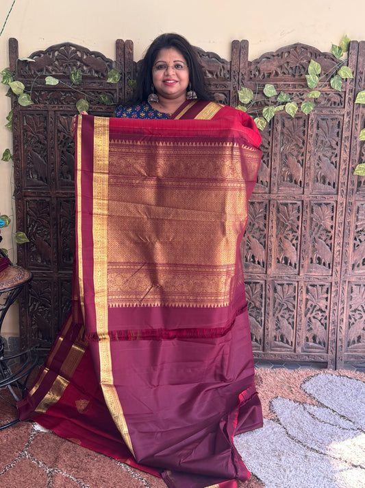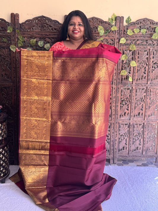 Pure Kanjivaram Silk Saree | Maroon With Gold Zari Border | Handloom | Silk Mark Certified
