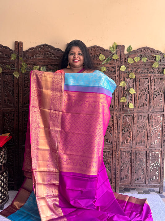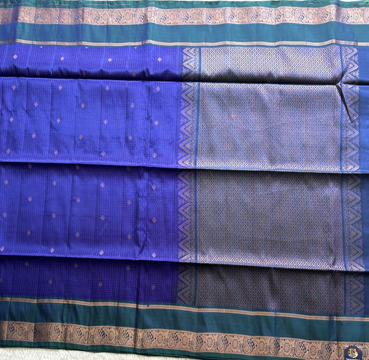 Pure Kanjivaram Silk Saree for Bridal | Blue with Gold Zari Border | Handloom | Silk Mark Certified