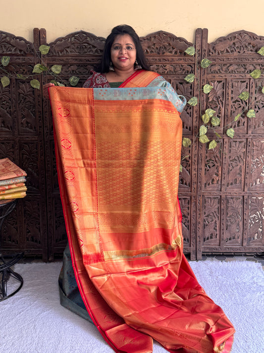 Gray Kanjivaram Bridal Silk Saree With Gold Zari Border | Handloom | Silk Mark Certified