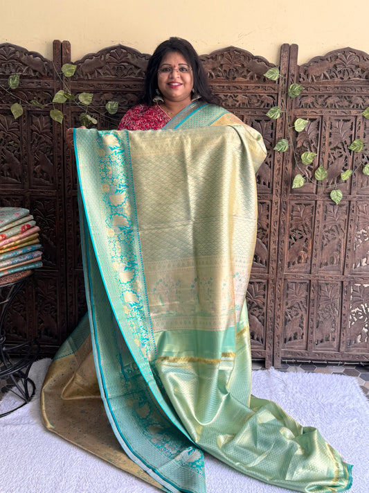 Sea Green Kanjivaram Bridal Silk Saree With Gold Zari Border | Handloom | Silk Mark Certified