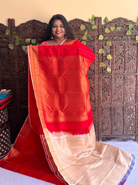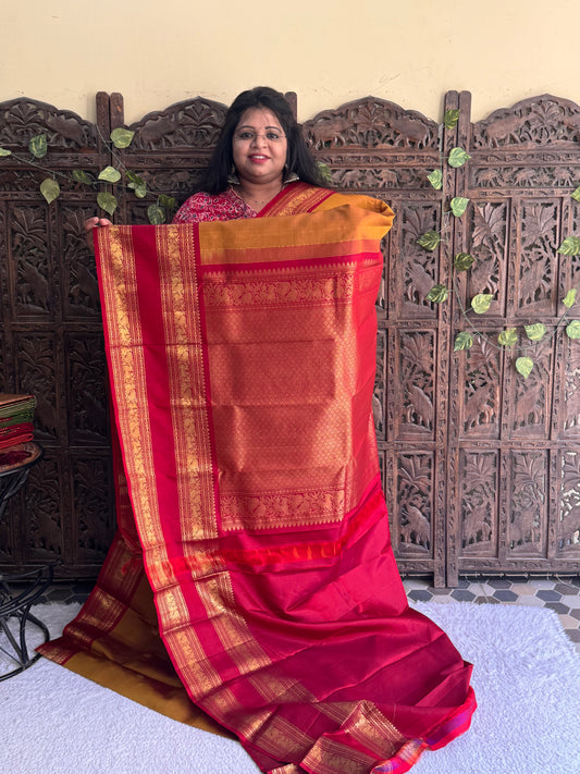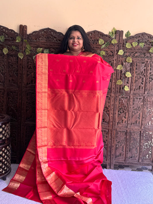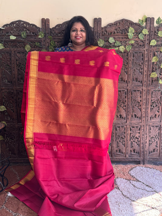 Pure Kanjivaram Silk Saree | Red With Gold Zari Border | Handloom | Silk Mark Certified