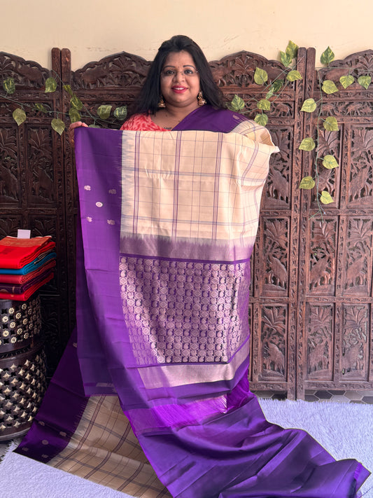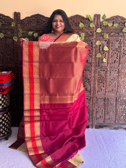 Pure Kanjivaram Silk Saree | Cream With Gold Zari Border | Handloom | Silk Mark Certified